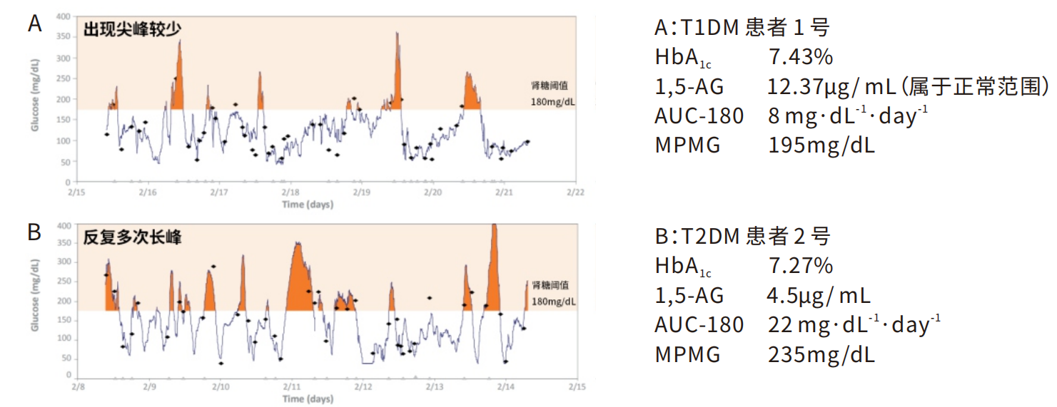HbA1c 無法有效反映短期血糖波動(dòng)和餐后血糖狀態(tài)(分別為7.43%和7.27%),低?平1,5-AG可有效反映短期血糖波動(dòng)(AUC-180)和餐后血糖狀態(tài)(MPMG)。