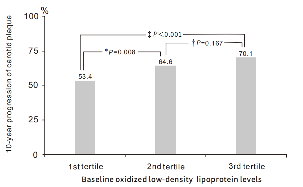 ●在健康的中年男性中,高ox-LDL水平個體患冠心病的風(fēng)險比正常個體高4倍