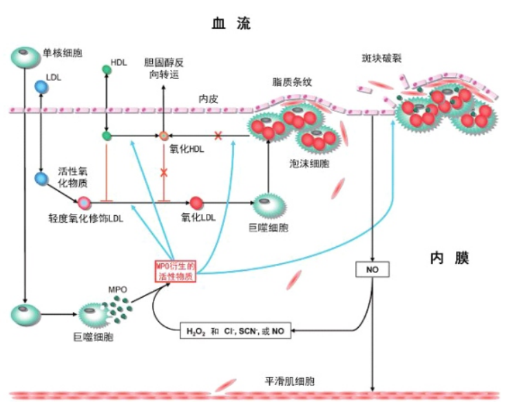 (1)MPO涉及動脈粥樣硬化以及血管中斑塊發(fā)展的所有階段