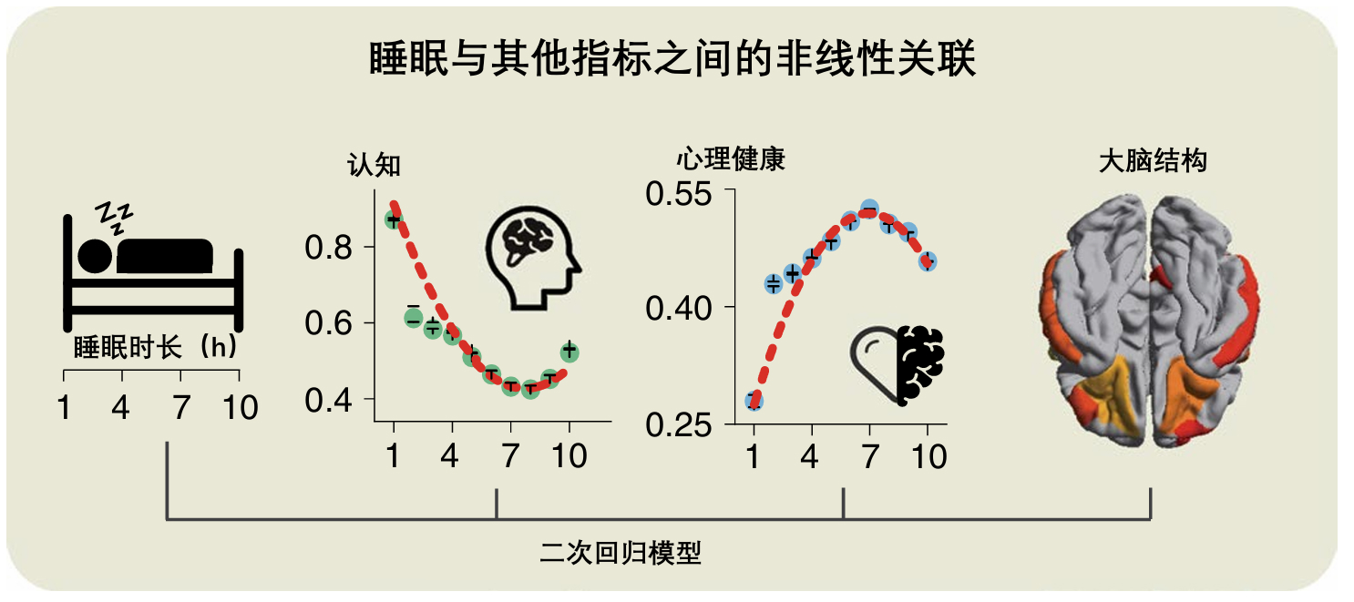 2022年發(fā)表于Nature上名為:The brain structure and genetic mechanisms underlying the nonlinear association between sleep duration, cognition and mental health 的研究論文顯示:7h是中年及以上人群的理想睡眠時長,睡眠過多或過少都不利于健康,不僅會造成認知功能差、影響心理健康,而且還可能造成體重增加以及某些慢性疾病的發(fā)生等。