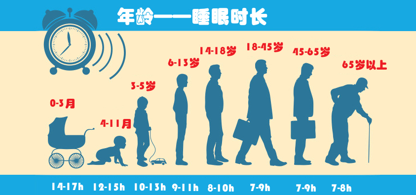 由于不同年齡段需要的睡眠時長是不同的,小編也貼心附上“年齡與睡眠”的時間表,快來看看自己最佳的睡眠時長吧!