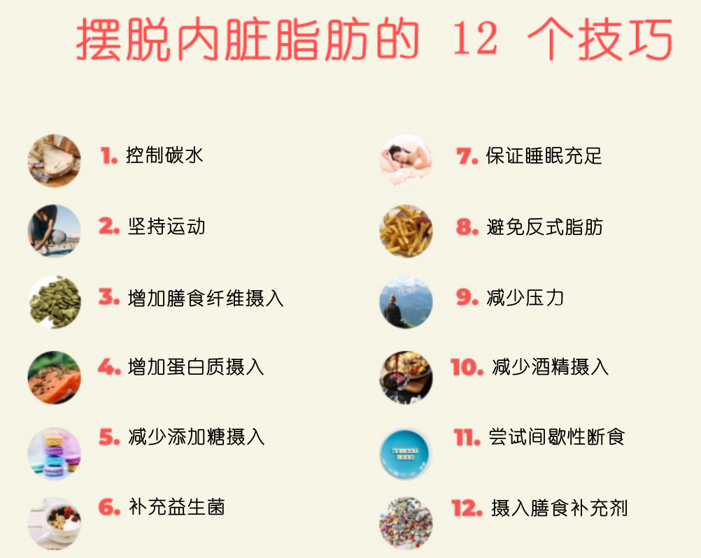 除上述方法外,減少添加糖的收入、增加蛋白質(zhì)攝入、減少壓力、避免吸煙喝酒、同時保持良好的作息習(xí)慣、保證足夠的睡眠和休息等生活方式對內(nèi)臟脂肪的減少都很有幫助。生活方式是基礎(chǔ),也可搭配定期體檢來進行干預(yù),了解自身體內(nèi)激素水平,有針對性的進行治療,可大幅提升效率哦!