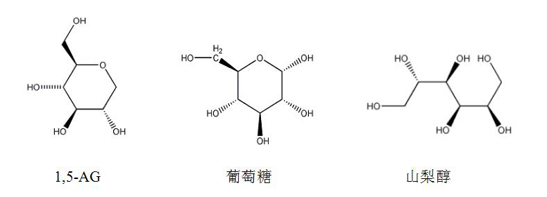 1,5-脫水葡萄糖醇又稱1,5 - 脫水 - D - 山梨醇(1,5 - anhydro - D - glucitol,1,5 - AG)是由吡喃糖環(huán)狀結(jié)構(gòu)第一位碳脫氧所形成,故又稱1 - 脫氧葡萄糖( 1 - deoxyglucose,1 - DG ),主要存在于人腦脊液、血清、各組織臟器中【1】 。人體正常情況下1,5 - AG保持穩(wěn)定,正常下限為85. 26 μmol/L。1,5 - AG 在糖尿病患者血清中顯著降低,降低程度與患者癥狀的嚴(yán)重程度有關(guān)。現(xiàn)已證實(shí),1,5 - AG是繼血糖、24小時尿糖定量、果糖胺(或糖化白蛋白)、糖化血紅蛋白(HbA1c)之后的又一新的、靈敏度高的、頗具前景的糖尿病病情監(jiān)測指標(biāo),甚而有望可作為糖尿病篩選及診斷的手段【2】 。