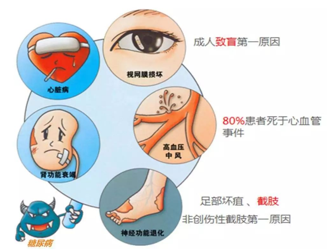 此外,糖尿病還會繼發(fā)感染、糖尿病足等并發(fā)癥,嚴(yán)重影響糖尿病患者生存質(zhì)量。