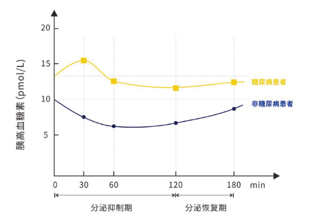 依據(jù)糖尿病患者糖耐量試驗(yàn)(OGTT)、胰島素釋放試驗(yàn)、C肽釋放試驗(yàn)的數(shù)值及胰高血糖素(Glucagon)的數(shù)值可以全面判斷患者胰島細(xì)胞功能受損程度。