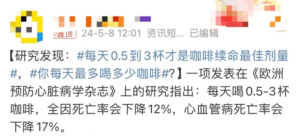 近期上熱搜的話題不知大家看到?jīng)]有,歐洲預(yù)防心臟病學(xué)雜志上的研究指出:每天喝0.5-3杯咖啡,全因死亡率會(huì)下降12%,心血管疾病死亡率會(huì)下降17%...那么咖啡與心血管疾病有什么千絲萬(wàn)縷的聯(lián)系呢,今天就來(lái)探討一下