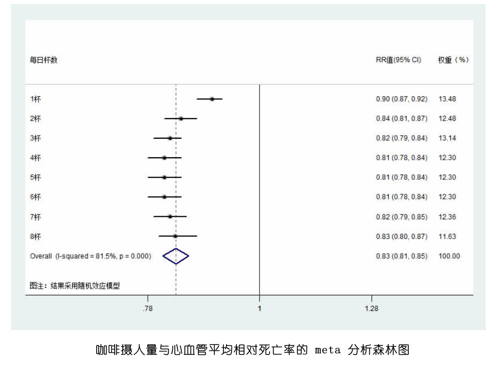 發(fā)表于2021年的《咖啡攝入量與心血管死亡率關(guān)系的劑量-反應(yīng)Meta分析》顯示與不喝咖啡的人群相比,喝咖啡人群的心血管疾病死亡率降低17%。